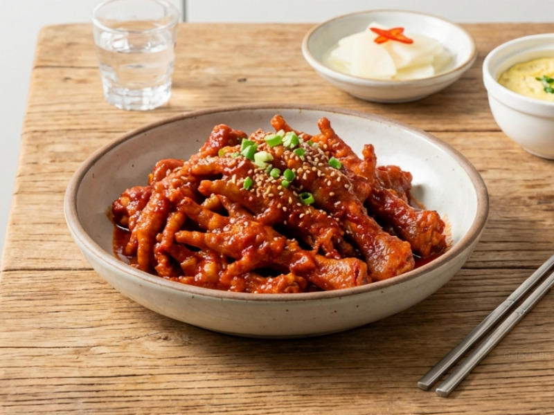 큼직한 감자와 닭고기를 매운 양념에 자박하게 끓여낸 요리. 국물에 밥 비벼 먹으면 없던 입맛도 돌아옵니다.