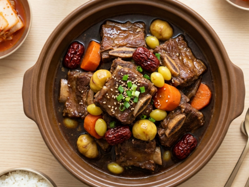 달콤한 간장 양념에 재워 숯불에 구운 소갈비. 뜯고 씹고 맛보고 즐기는 한국 고기 요리의 정점입니다.