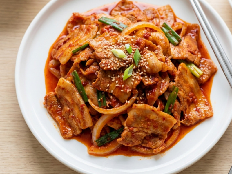 매콤달콤한 고추장 양념에 돼지고기와 야채를 볶아 불맛을 입힌 요리. 흰 쌀밥과 환상적인 궁합을 자랑합니다.
