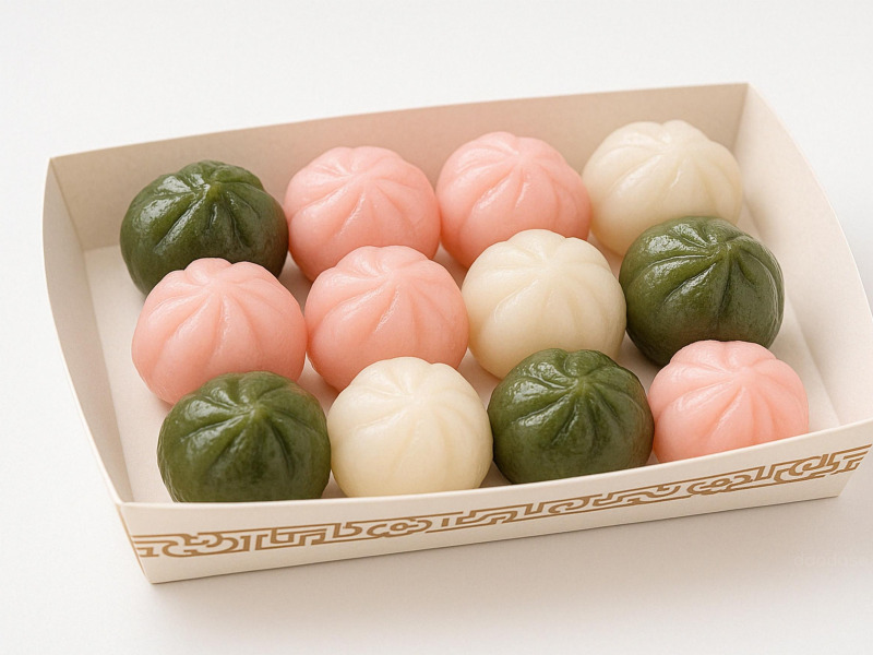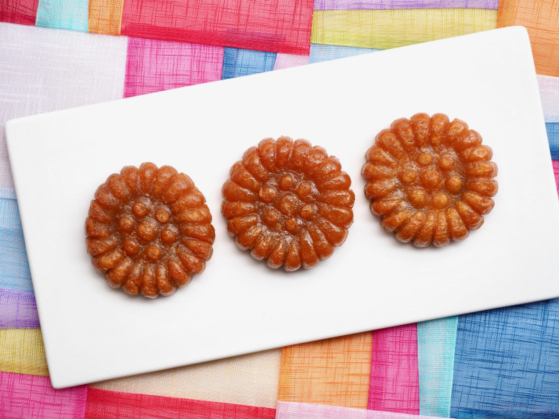 한입 크기의 알록달록한 떡. 깨물면 달콤한 꿀참깨 시럽이 '톡' 하고 터져 나옵니다.