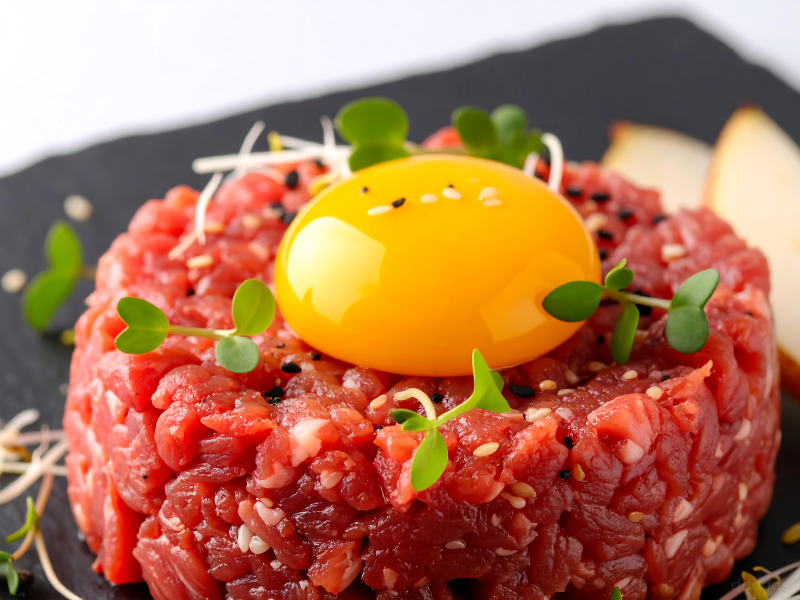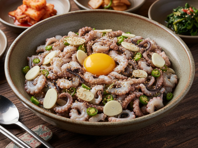 신선한 소고기를 얇게 썰어 배, 참기름, 계란 노른자와 버무린 요리. 익히지 않아도 비리지 않고 고소함이 폭발합니다.