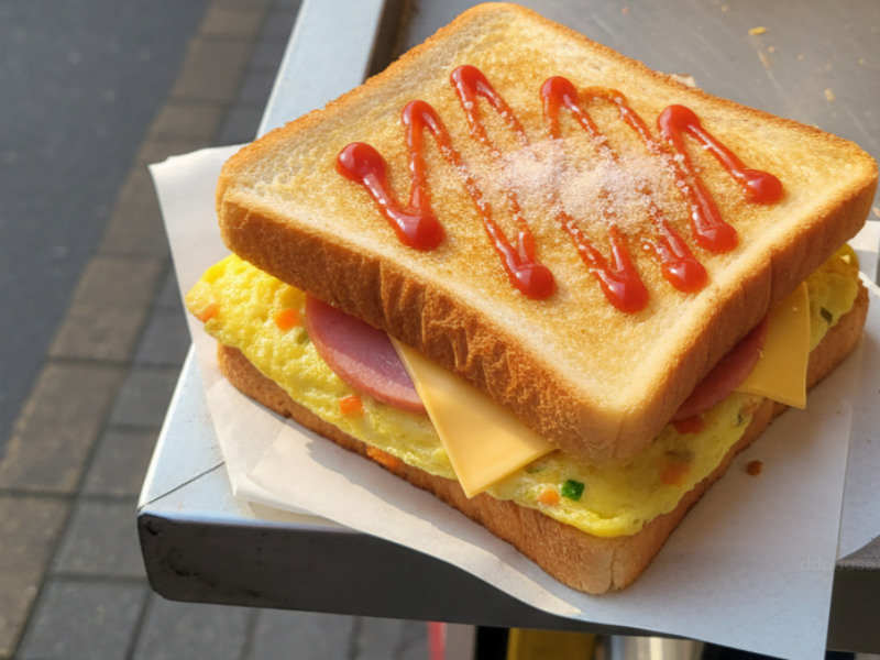 고소한 버터 향기에 이끌려 멈추게 되는 마성의 맛. 양배추 계란 부침에 설탕을 솔솔 뿌려 '단짠'의 정석을 보여줍니다.