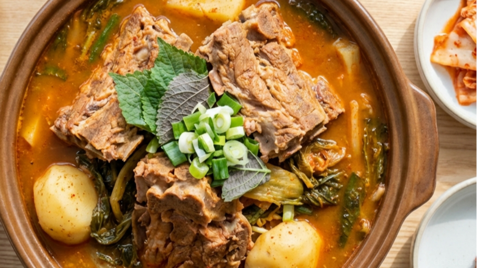 돼지 등뼈를 감자, 우거지와 함께 얼큰하게 끓여낸 탕. 뼈 사이의 살을 쏙쏙 발라 먹는 재미가 있습니다.